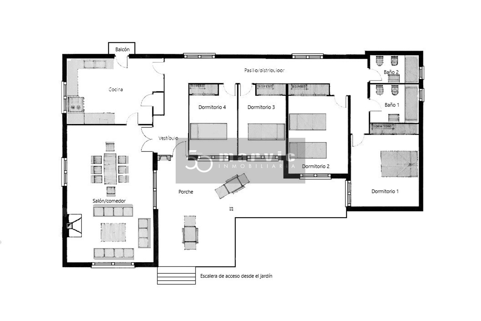 Inmobiliaria Marvic vende villa independiente en la zona de Heliópolis de 181 m2 construidos habitables en única planta (más otros 180 m2 en semisótano) con una terraza-porche de más de 35 m2, en una ESPECTACULAR PARCELA de 1008 m2 con amplias zonas ajardinadas con piscina.